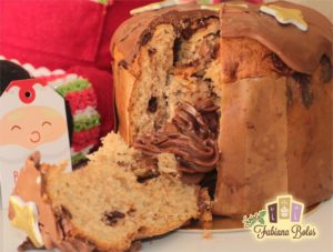 Chocotone Bauducco recheado com Brigadeiro Gourmet ao leite e cobertura de chocolate (acompanha caixa de acetato, fita e tag)